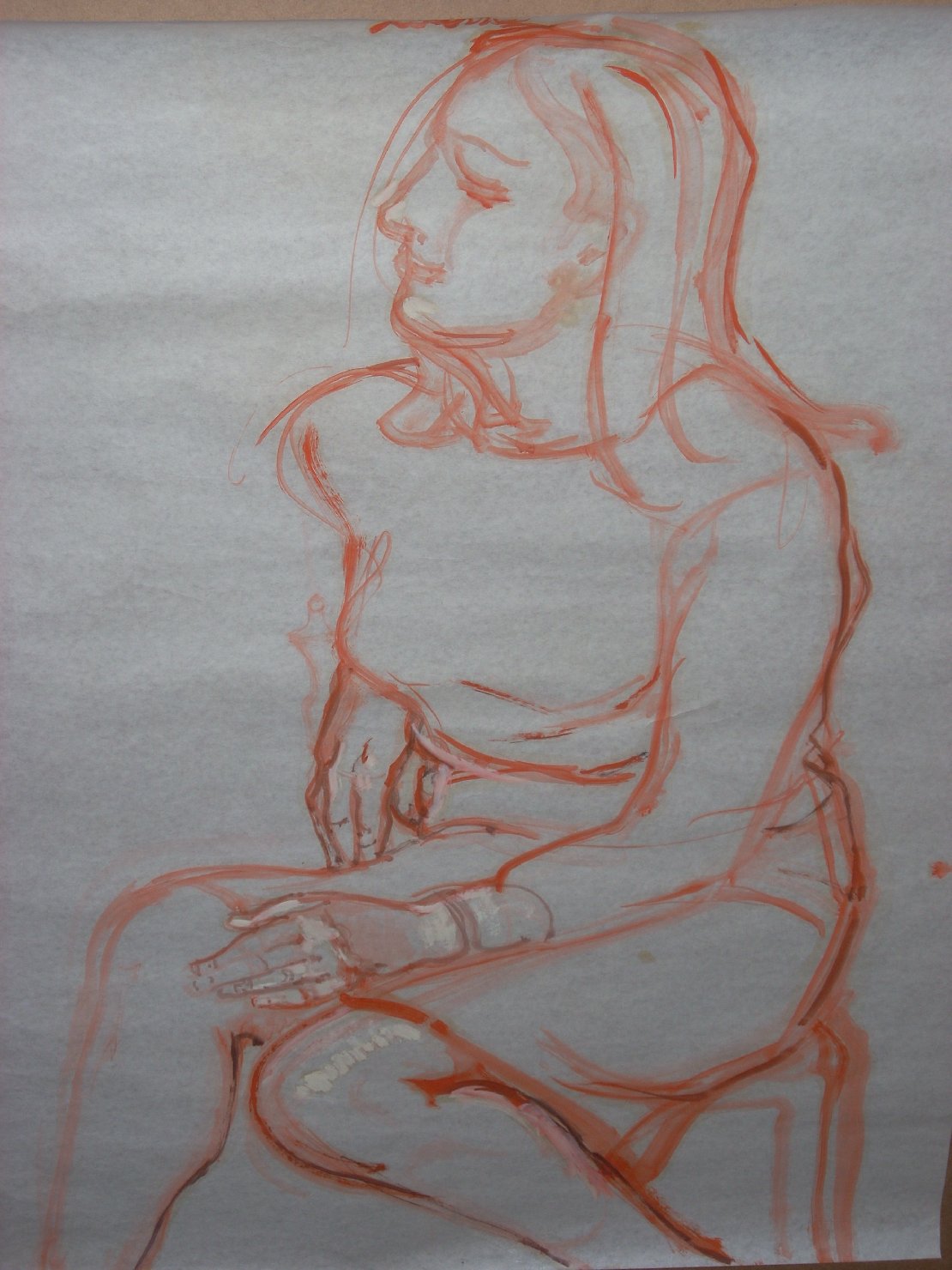 Profilo di donna prosperosa in arancio. figura femminile seduta
