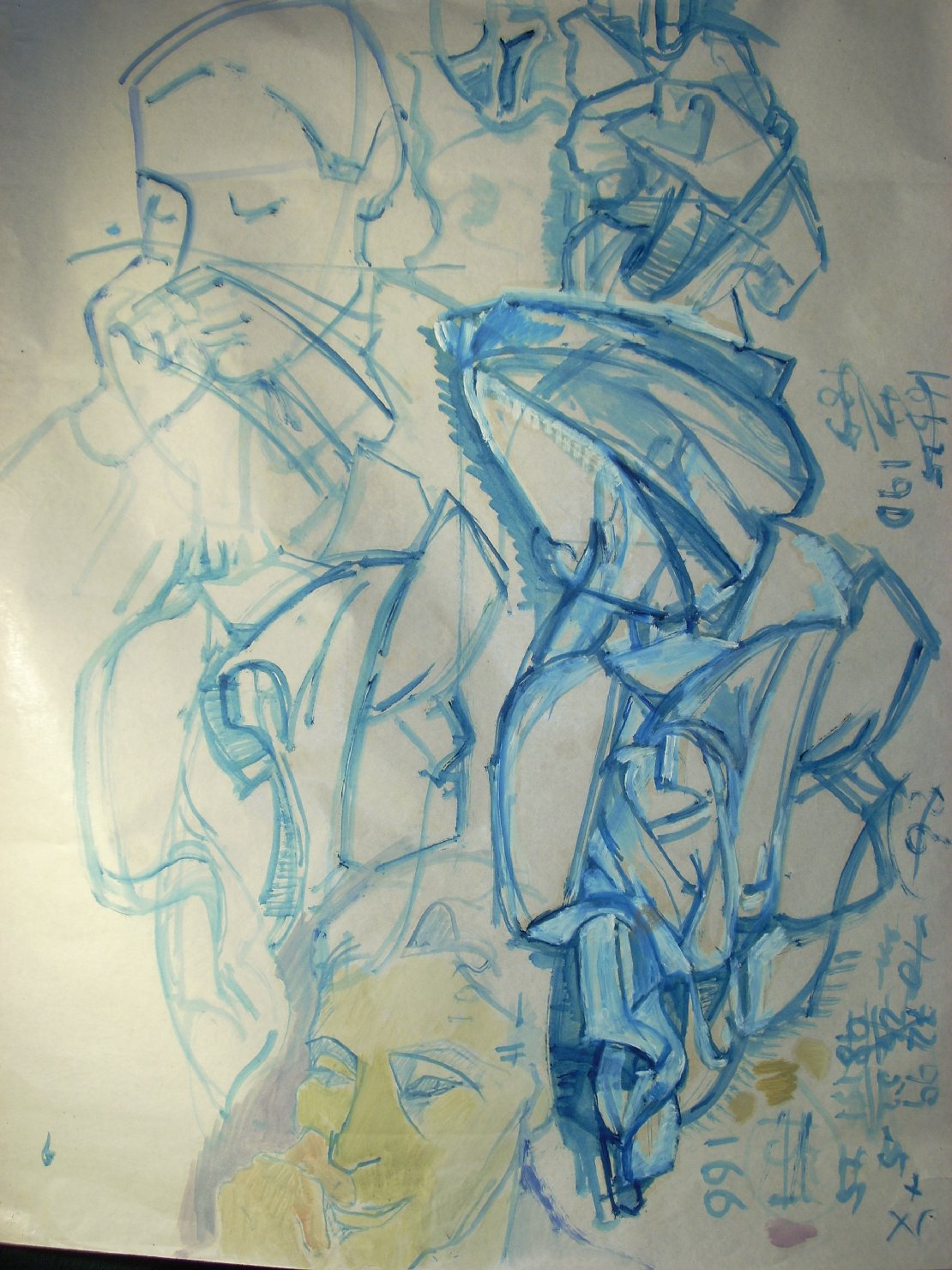 Quattro pieghe in blu e due teste femminili