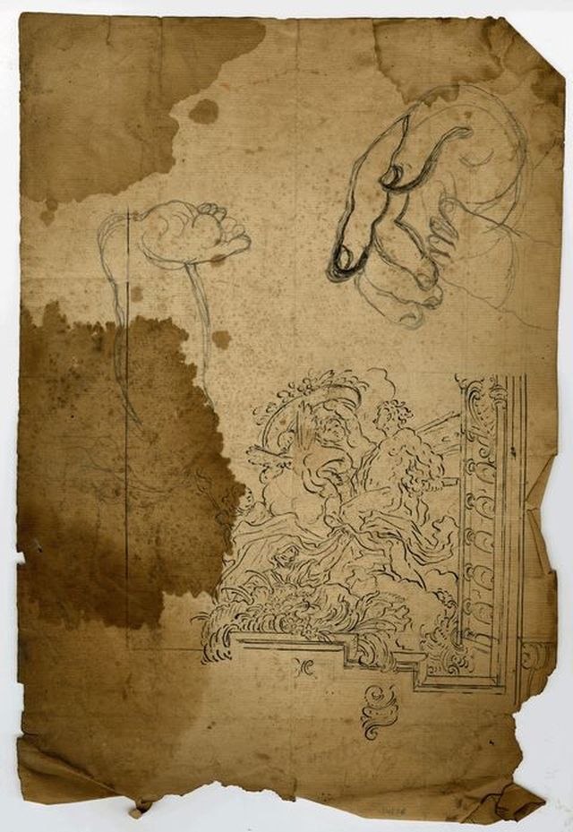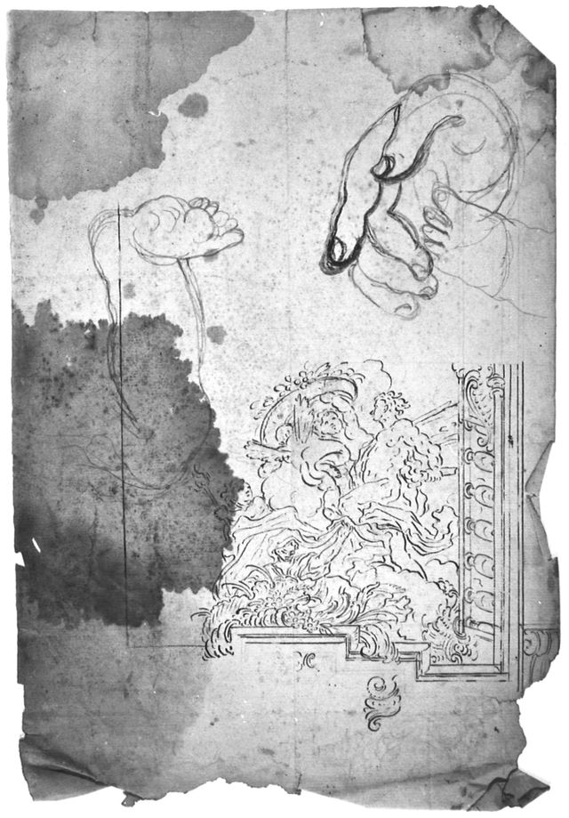 Sul recto è presente uno studio di volta delineato solo nella parte superiore. Sul verso campeggia, nella parte inferiore di un rettangolo, un gruppo di figure e nella parte inferiore studi di arti