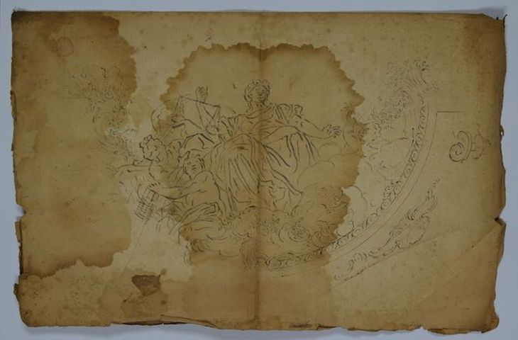- NOTIZIE STORICO CRITICHE La raccolta, miscellanea di disegni, acquerelli, bozzetti, stampe etc. di vari artisti attivi nei secc. XVII e XVIII, fu recuperata nel 1983 presso le famiglie Iannadrea e Tirabassi, eredi dei Giuliani, Giacomo, padre, e Nicola, figlio, pittori e decoratori di Oratino (CB) operativi in ambito napoletano a cavallo dei secc. XIX-XX. Nicola, allievo di Domenico Morelli, la acquisì dagli eredi di Ciriaco Brunetti, pittore e decoratore oratinese attivo in tutto il Molise dalla prima metà del sec. XVIII agli inizi del XIX. Nel 1990 è stata acquistata dal MIBAC e custodita dalla locale Soprintendenza (specifiche dell’atto del 29/10/1990: 375 disegni su fogli singoli; un taccuino di 27 fogli, un taccuino di 21 fogli, un taccuino di 141 fogli, un volume rilegato contenente 54 fogli, 129 incisioni e 24 bozzetti ad olio su tela o cartone). Considerato che su un foglio sono stati realizzati più disegni-bozzetti-schizzi, il fondo è costituito da 700 disegni circa, di cui oltre la metà acquerellati, e da circa 330 stampe, italiane e tedesche, dei secc. XVI-XVIII. La collezione è composta da: disegni raccolti in n. 4 taccuini di Ciriaco Brunetti o Beniamino Brunetti, di varie dimensioni (n. 1 con figure di Santi e n. 3 con progetti per decorazioni); un album rilegato in pelle nel quale sono stati originariamente incollati circa 200 disegni di mani diverse (riportati a singoli foglio dopo il restauro). Vi sono inoltre: circa n. 200 studi per decorazioni in larga parte siglati o firmati da Ciriaco Brunetti; un gruppo di circa n. 70 accademie di nudo riconducibili alla bottega di Francesco Solimena; un gruppo di circa n. 30 disegni a soggetto sacro di Niccolò Falocco, pittore oratinese zio di Brunetti, allievo di Solimena, operativo a Napoli; n. 40 fogli di autori vari di ambito napoletano dei secc. XVI-XVIII (Balducci, Corenzio, Giaquinto etc.). L’importanza del fondo è data dalla sua unitarietà trattandosi di materiale di uso quotidiano, giunto quasi integro fino a noi, di un pittore gravitante in ambito provinciale, la cui produzione superstite è purtroppo oggi riconducibile solo ad una serie di dipinti, conservati in chiese molisane. Testimonia, inoltre, non solo la quotidiana, costante attività del Brunetti nell’ambito dei soggetti decorativi, ma anche l’operosa attività di una bottega oratinese in cui praticavano più esponenti dello stesso ambito familiare (Pietro, Beniamino, Benedetto e Stanislao BrunettI). Le opere, restaurate per oltre il 50% in tre fasi, dal 1992 al 1995 dai restauratori C. L. B. Borruso e Crisostomi, sono state custodite presso i depositi della Soprintendenza fino al 2015 anno di definitiva collocazione presso Castello Pandone di Venafro, dove, a rotazione, fanno parte dell’esposizione permanente del Museo