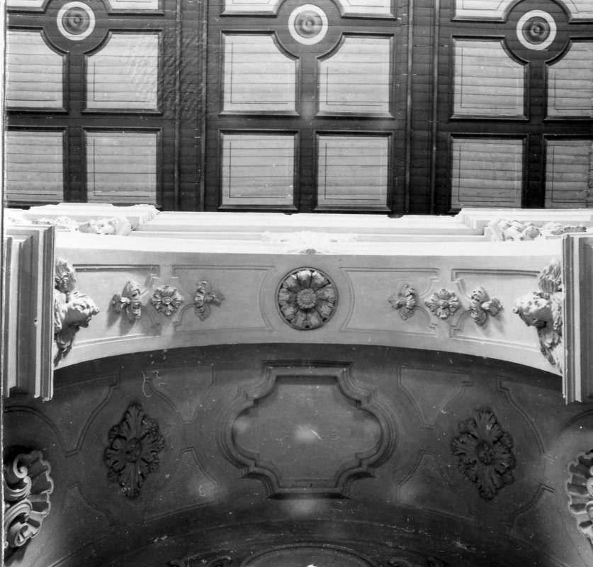 La decorazione consta, in basso ed al centro, di motivi decorativi fitomorfi ed, in alto, di due ceherubini con ali semiaperte; un terzo cherubino corona una cornice ovale, arricchita da motivi vegetali. Negli intradossi, al centro, campeggia un fiore ed, ai lati, cherubini che si ripetono sulle pareti laterali all'interno di ciascuna cappella