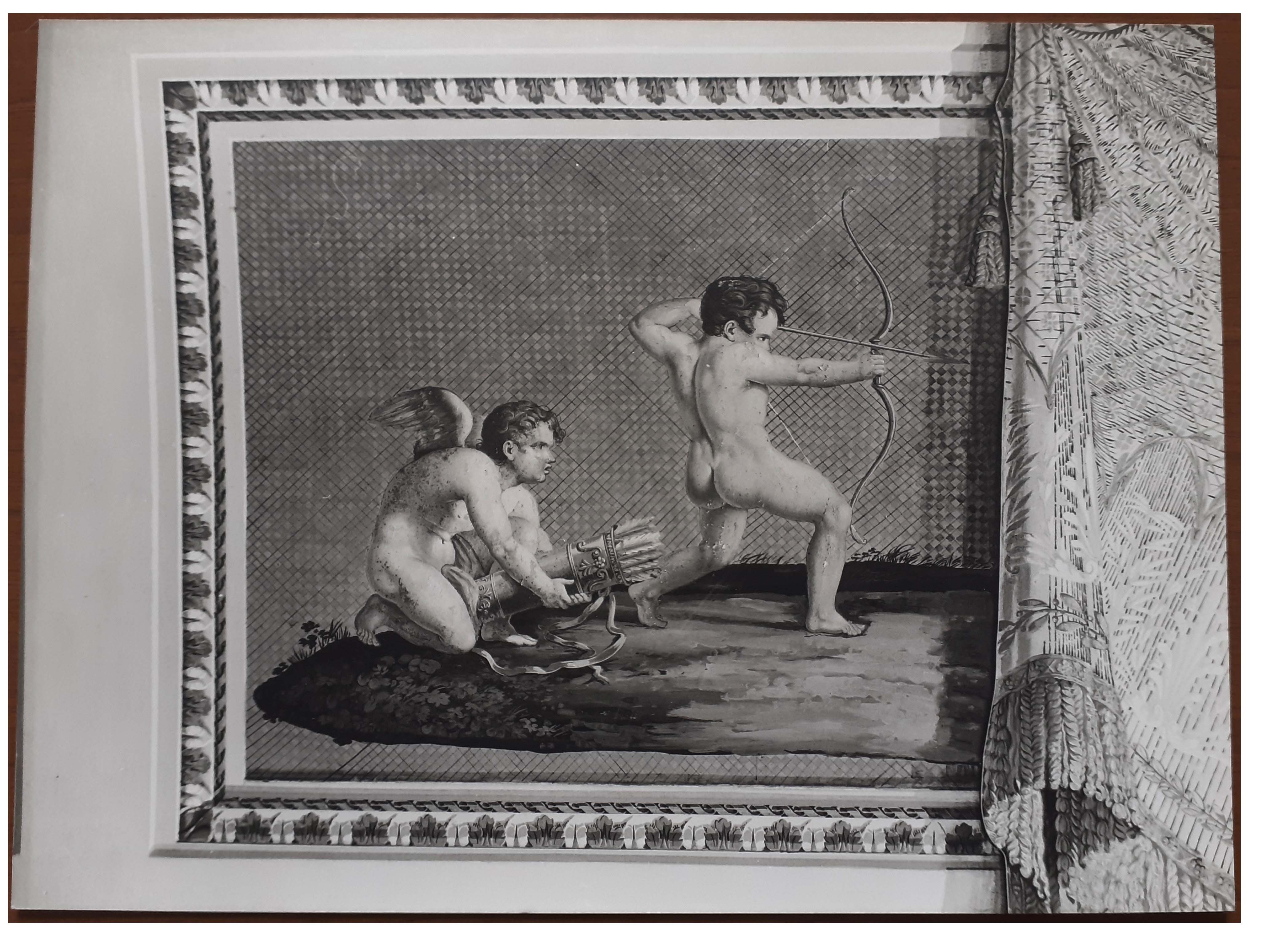 Il dipinto rappresenta due putti nudi su fondo d'oro che stanno tirando delle frecce con l'arco