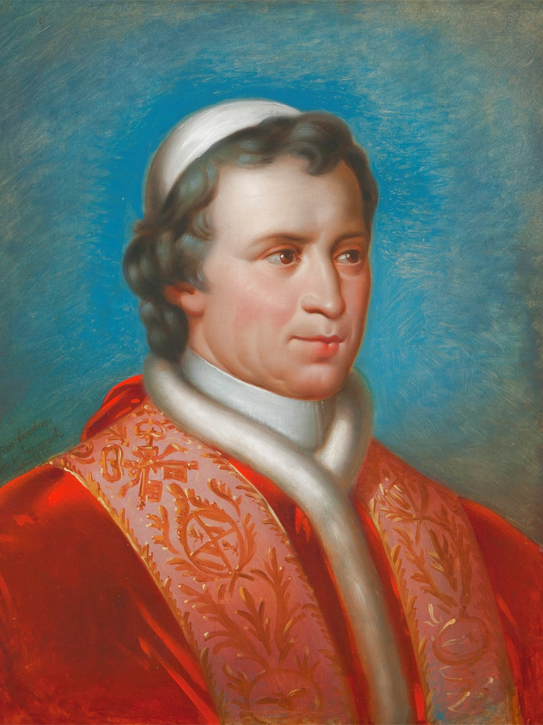 Ritratto a mezzzo busto del papa raffigurato con zucchetto bianco e manto rosso foderato in pelliccia