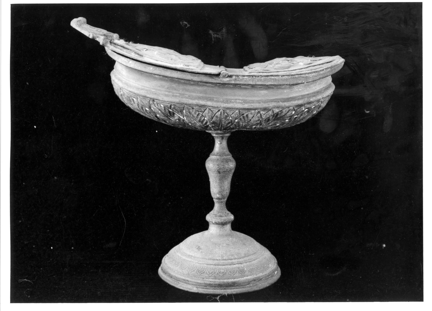 Su piede circolare inciso a motivi foliacei corpo inciso a motivi vegetali