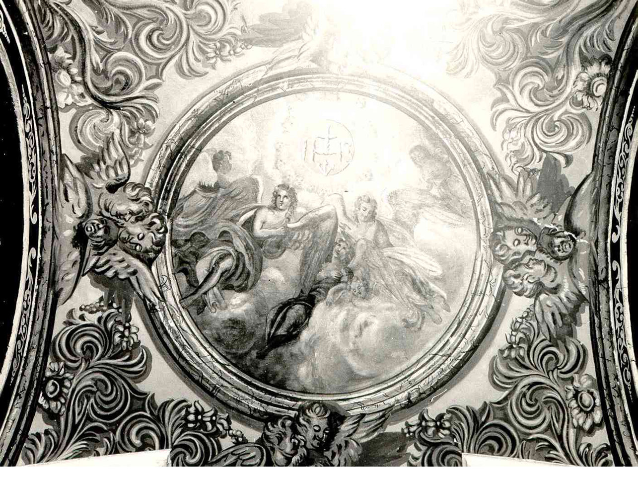 gloria di angeli intorno al simbolo della Trinita'