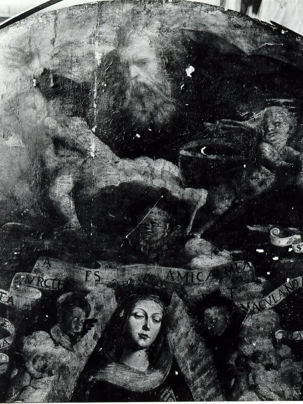 - ISCRIZIONI in basso al centro - TOTA ES AMICA MEA F. MACULANO ES TE/ CIVITAS DEI ORTUS CONCLUSUS/ IN QUA NULLA ORIGINALIS CULKPA FUIT A.D.MCCCXXXVIII - lettere capitali - latino