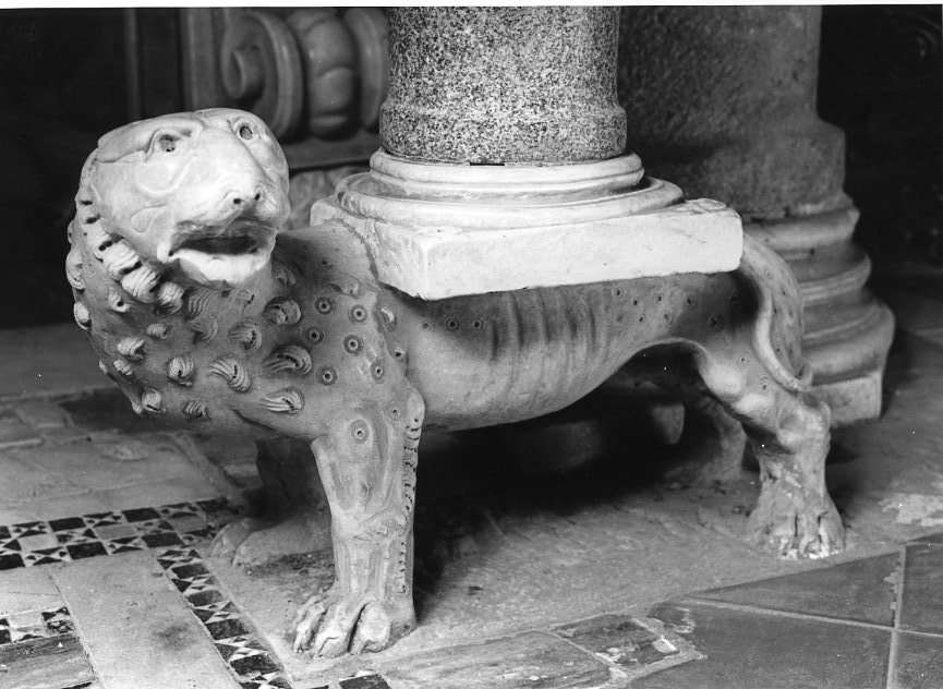 La scultura rappresenta una fiera stilofora a figura intera sul cui dorso poggia una colonna di marmo mischio. Il corpo dell'animale è rivolto verso la navata centrale e la testa guarda verso l'ingrasso principale