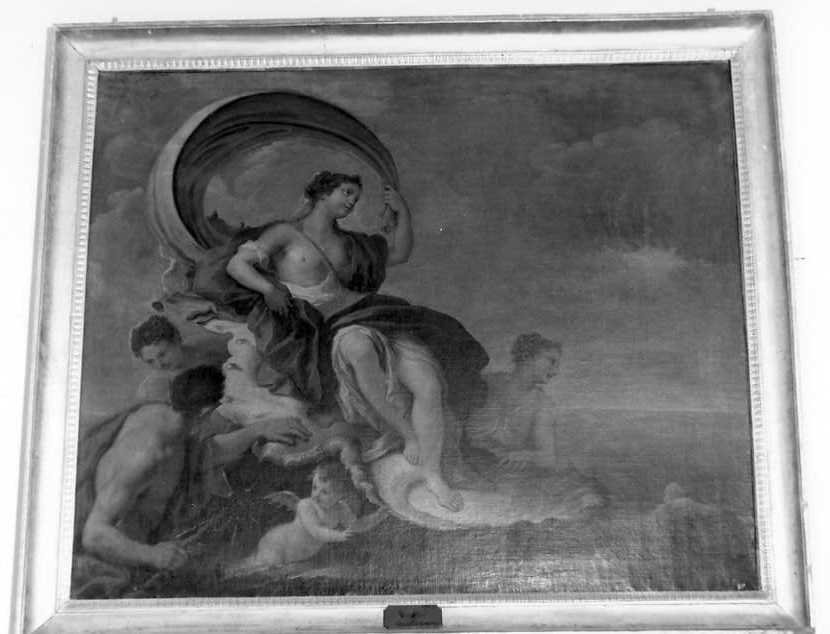 E' raffigurata Galatea ninfa marina figlia di Nereo e di Doride. Galatea è seduta sulla sua conchiglia, un drappo di stoffa azzurro mosso dal vento assume la forma di una aureola sul capo della ninfa. Intorno sono raffigu rati alcuni personaggi del mare, quello in primo piano di spalle potrebbe essere Aci