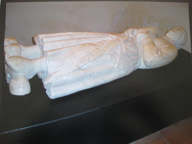 - NOTIZIE STORICO CRITICHE Trattasi del coperchio del sarcofago di Carlo de Lagonissa, gran siniscalco di Sicilia, legato alla corte angioina di Napoli, marito di Caterina de Valdemonte. Proveniente dalla cappella della famiglia de Lagonissa, oggi conosciuta come la cappella della Schiodazione, dotata nel 1299 da Guido di Valdemonte, padre di Caterina. La statua giacente doveva far parte di un monumento sepolcrale certamente complesso secondo le consuetudini iconografiche legate alla funzione celebrativa. La statua di Carlo è identica a quella del padre Giovanni de Lagonissa che assieme alla statua giacente di Caterina de Valdemonte dovevanno far parte della sistemazione sepolcrale della cappella detta della famigia de Lagonissa, la cui sistemazione si ipotizza fosse concepita come un contesto unitario