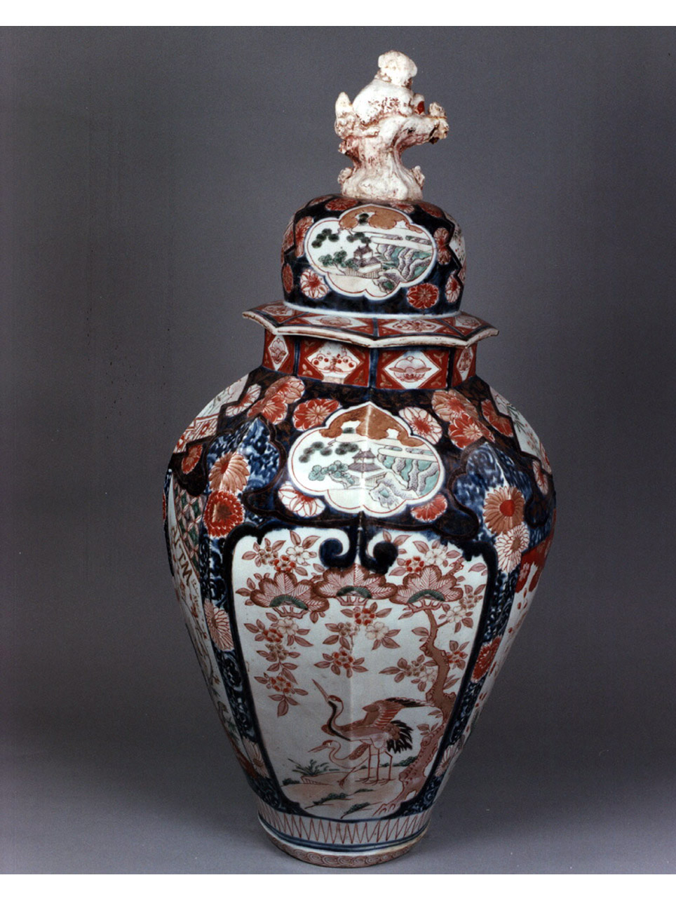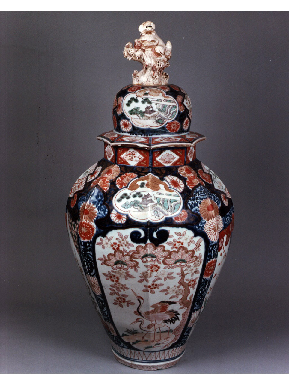Vaso con coperchio in porcellana dipinta del tipo Imari