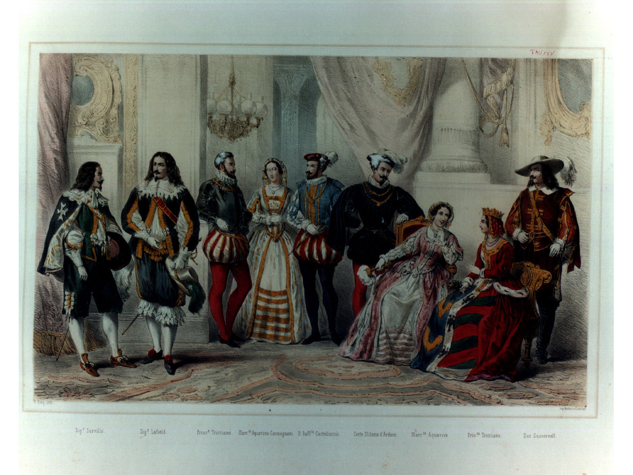- ISCRIZIONI SIG.R SORVILLO.; SIG.R LAFIELD.; PRINC.E TRICCIANO.; MARC.SA AQUAVIVA-CARMAGNANI.; D. RAFF.LE CASTELLUCCIO.; CONTE MILANO D'ARDORE.; MARC.SA AQUAVIVA.; PRIN.SA TRICCIANO.; DUC. DUMERVALL - corsivo -