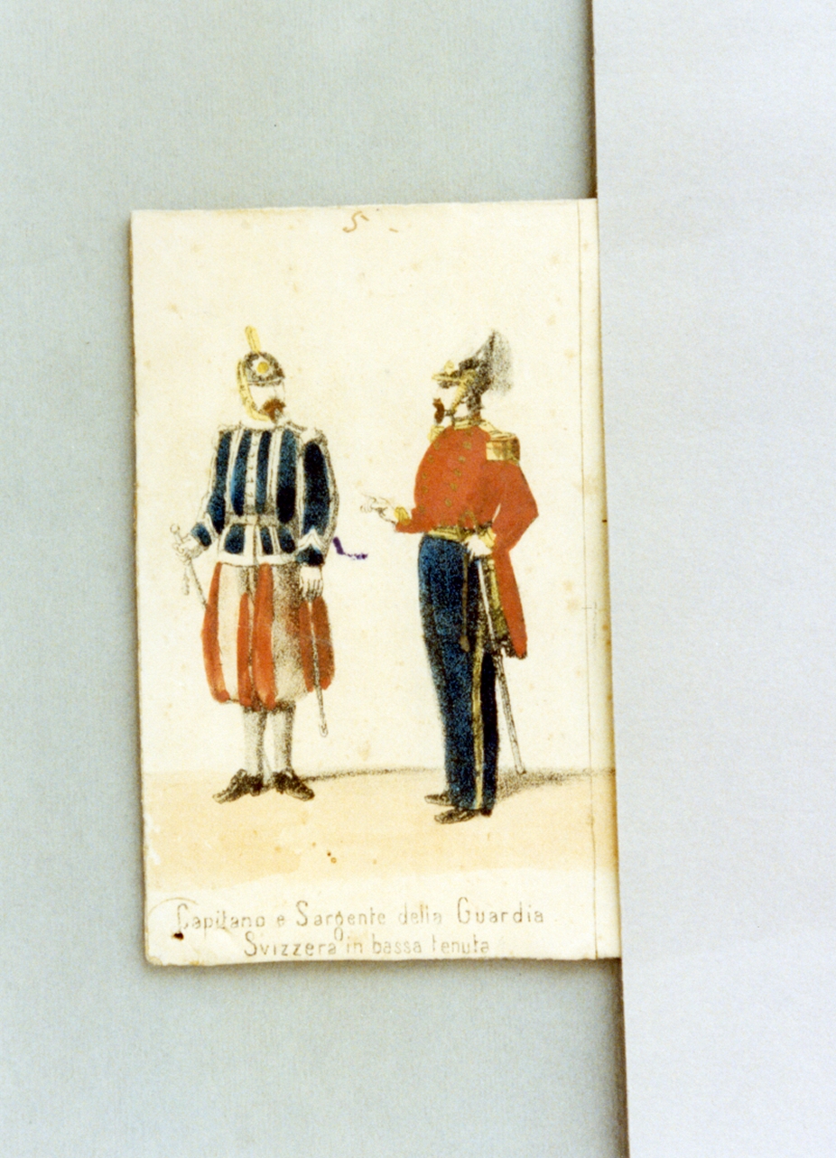 - ISCRIZIONI in alto al centro - CAPITANO E SARGENTE DELLA GUARDIA SVIZZERA IN BASSA TENUTA - a penna -