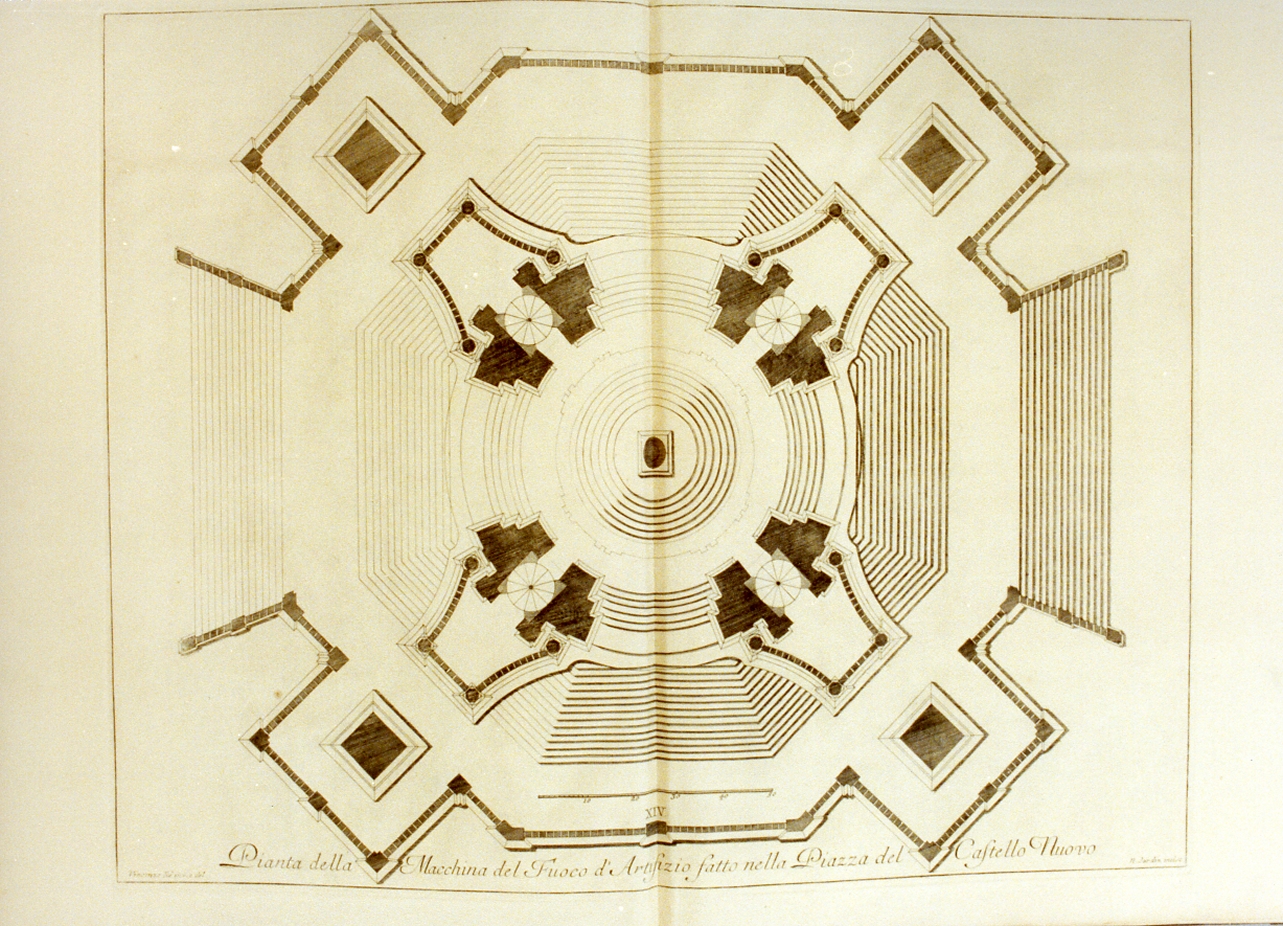 pianta della macchina del fuoco allestita nel largo di castello a Napoli