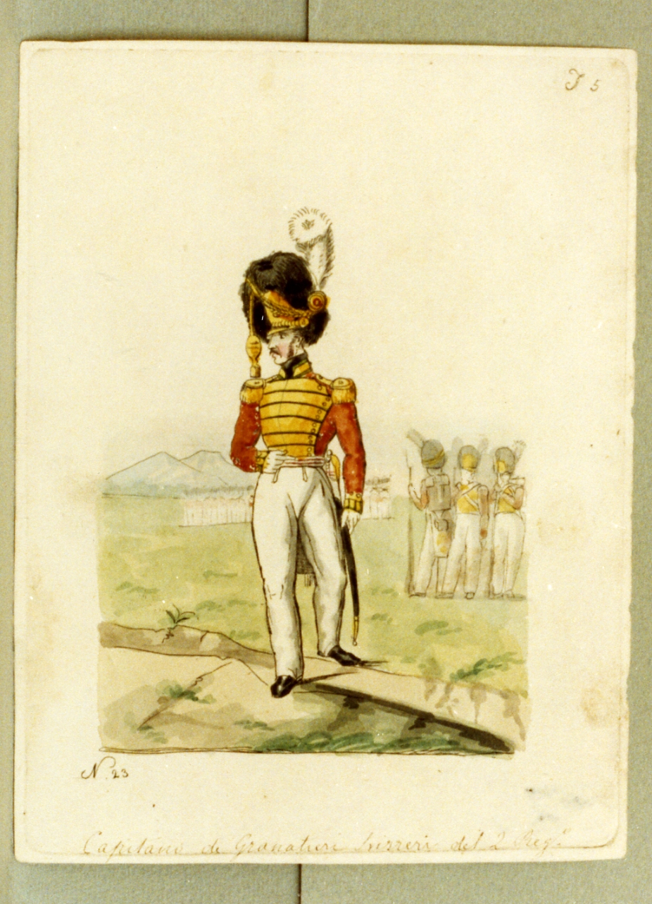 - ISCRIZIONI in basso a sinistra - CAPITANO DÈ GRANATIERI SVIZZERI DE 2 REG.O -