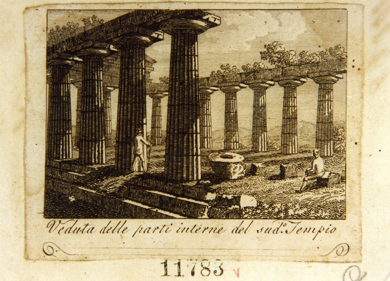 veduta delle parti interne del sud.o tempio. interno di un tempio di Paestum