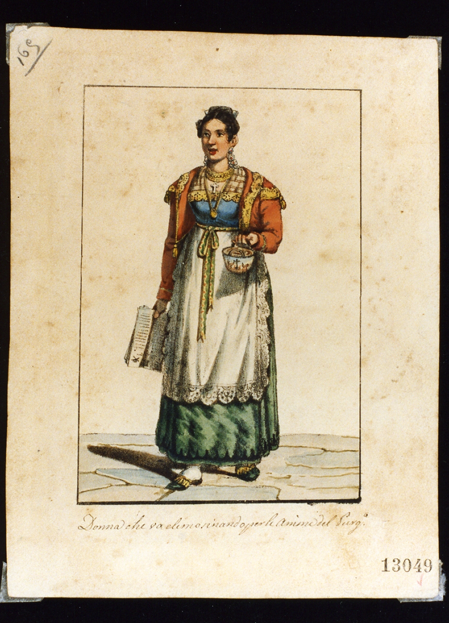 donna che va elemosinando per le anime del purg.o. donna in costume popolare