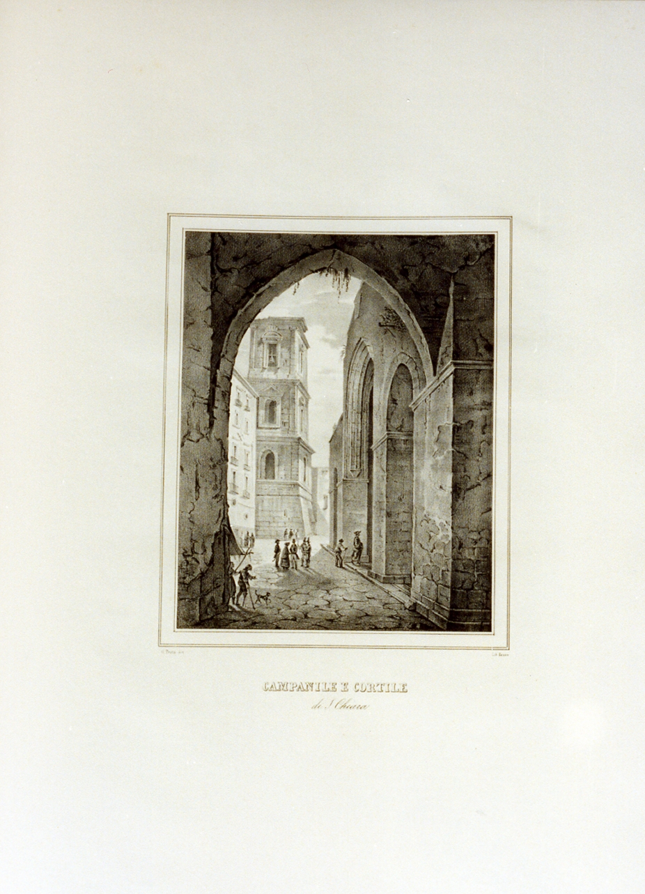 campanile e cortile. veduta del cortile di Santa Chiara a Napoli