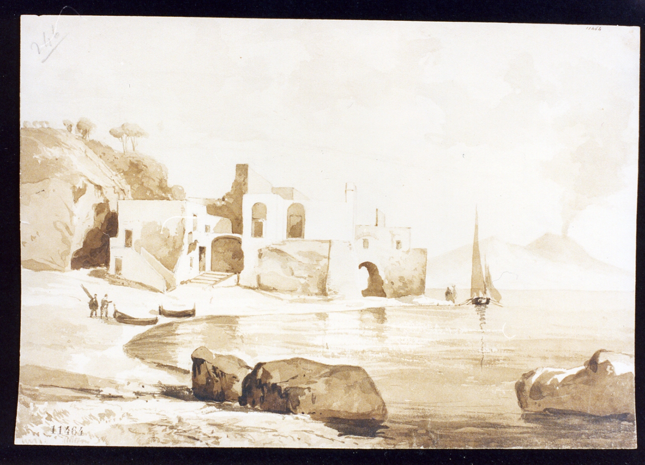 marina col Vesuvio (disegno) - ambito napoletano (seconda metà sec. XIX)