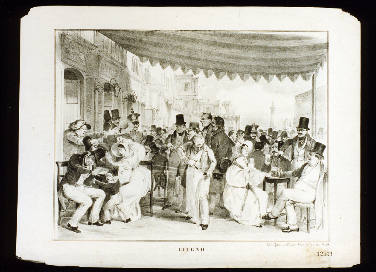 giugno. scena di vita cittadina in un caffè