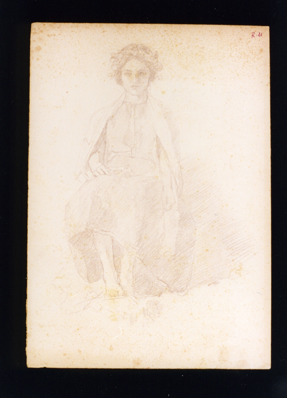 figura femminile seduta con ghirlanda