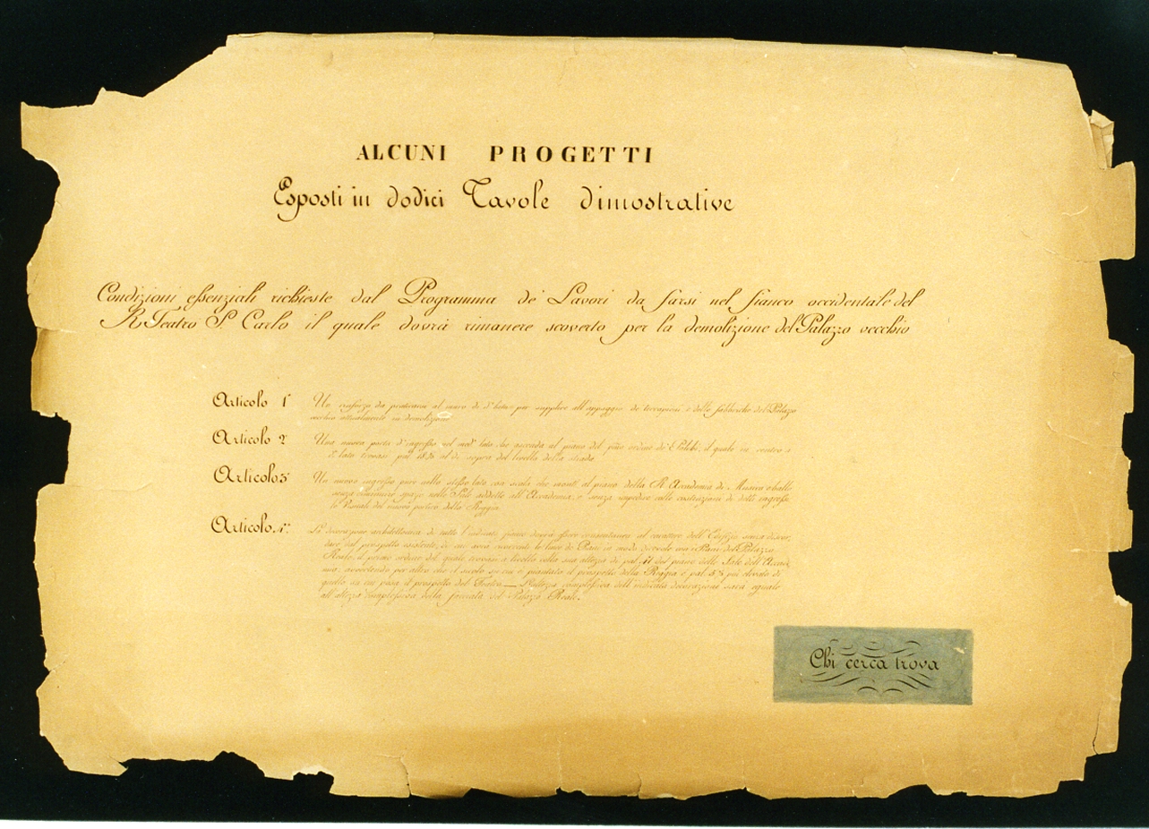 Frontespizio della raccolta di 12 tavole relative al progetto di lavoro per il teatro San Carlo verso occidente