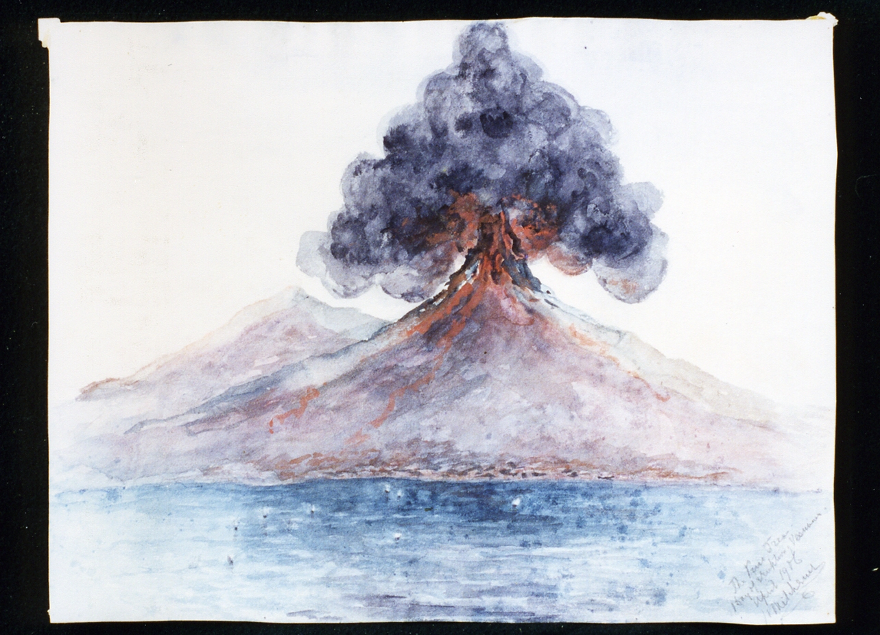 Vesuvio dal mare durante l'eruzione del 1906 (disegno) - ambito europeo (sec. XX)