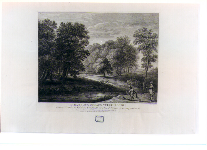 - ISCRIZIONI in basso al centro - LA CHASSE AUX OISEAUX, VUE DE FLANDRE -