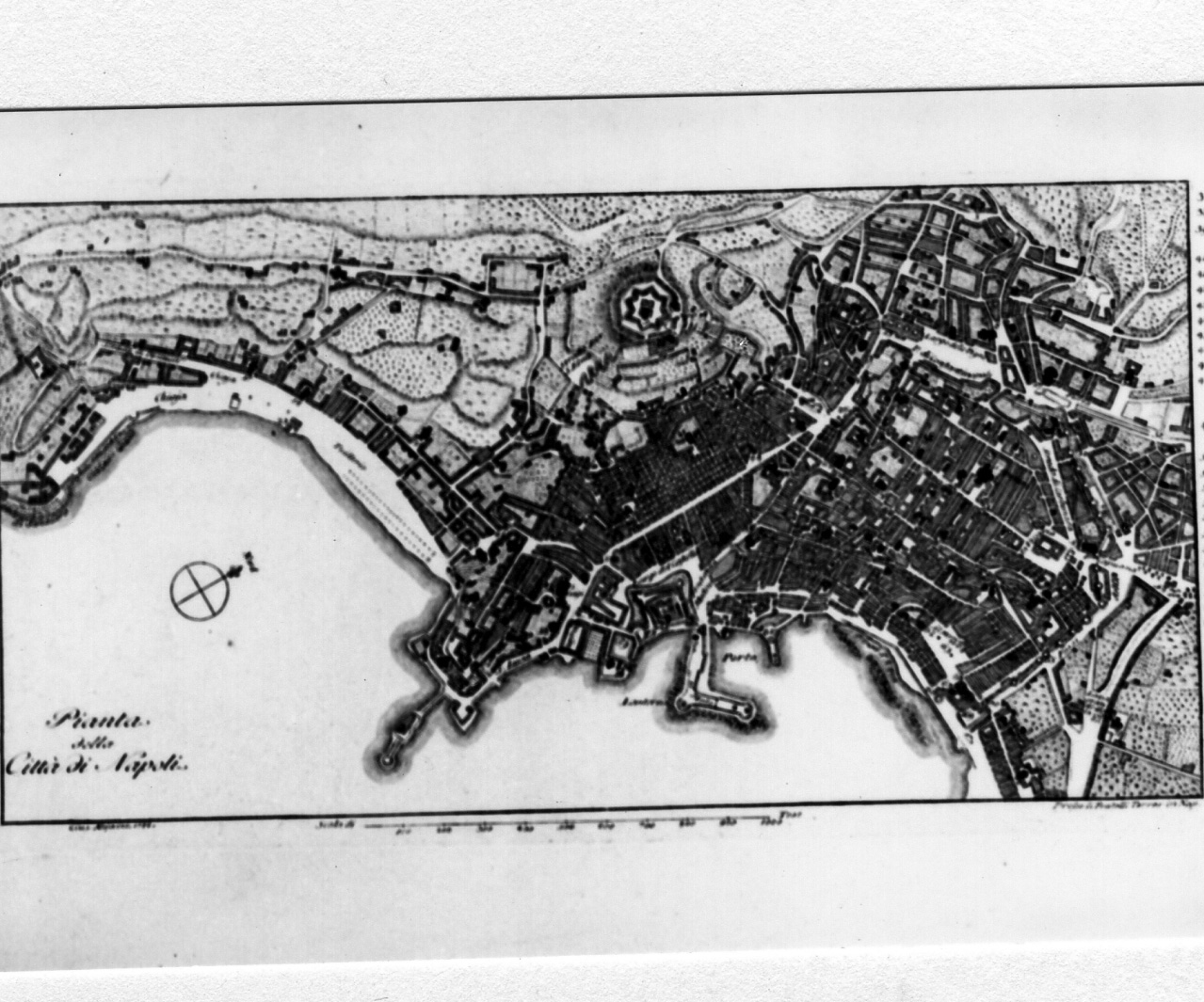 - ISCRIZIONI in basso a sinistra - PIANTA/ DELLA/ CITTA' DI NAPOLI - corsivo -