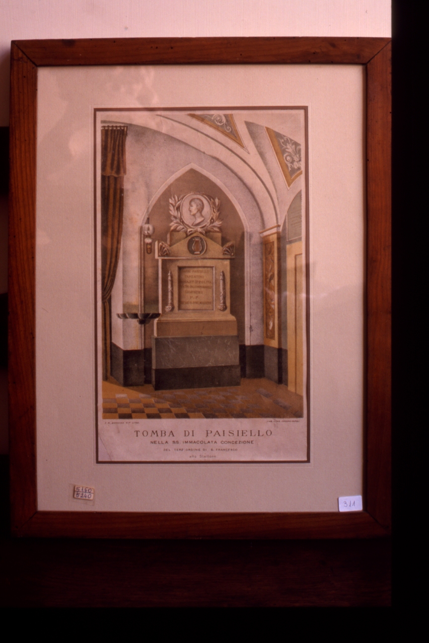 Tomba di Paisiello nella SS. Immacolata Concezione del Terzo Ordine di S. Francesco allo Stallone. monumento sepolcrale di Paisiello