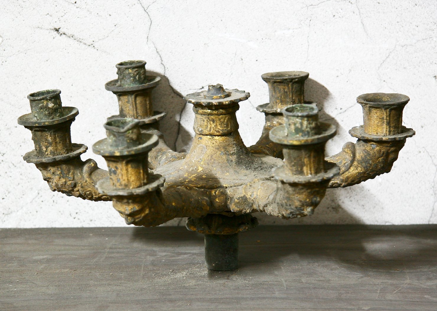 Lampadario in ferro ottonato a sette fuochi