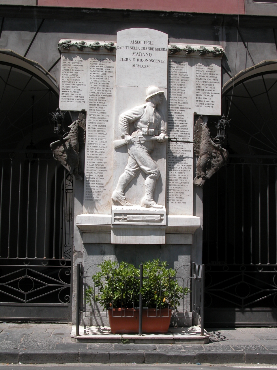 - ISCRIZIONI centrale/ in alto - AI SUOI FIGLI/ CADUTI NELLA GRANDE GUERRA/ MARANO/ FIERA E RICONOSCENTE/ MCMXXVI// - lettere capitali - a incisione - italiano