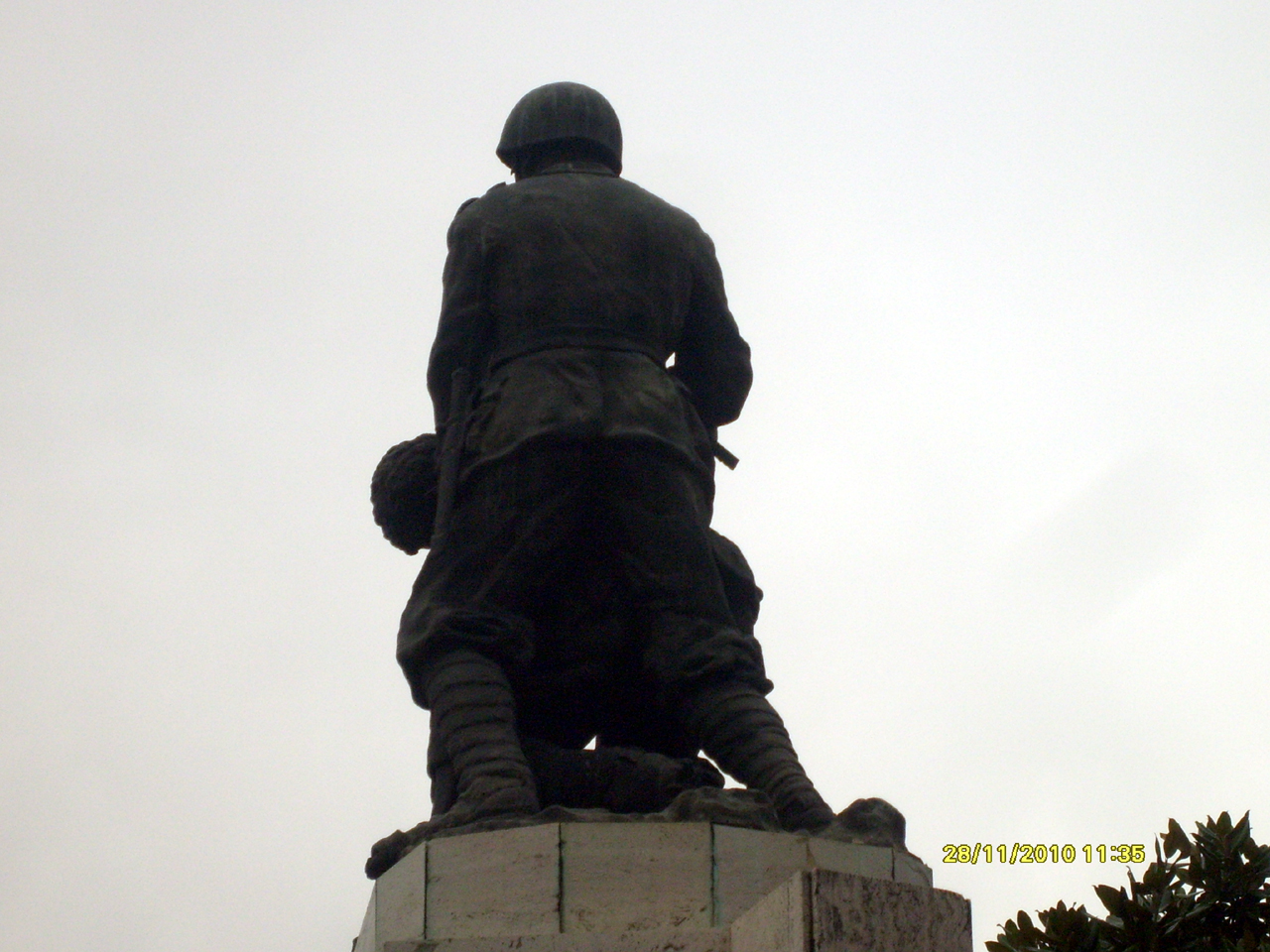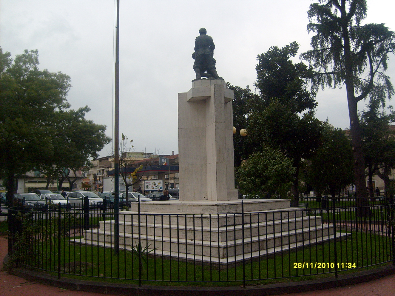Su una base gradinata poggia un alto basamento sul quale insiste un gruppo scultoreo bronzeo raffigurante un soldato che sorregge un commilitone ormai esanime. Questa tipologia di monumento caratterizzata da un basamento sormontato da due soldati di cui uno morente la ritroviamo nei monumenti di Sant'Arsenio e di Moio della Civitella, entrambi in provincia di Salerno, a Forino (AV) e a Somma Vesuviana (Na) opere che restituiscono un'immagine stereotipata e fredda di quella che fu una grande tragedia umana. Sul prospetto anteriore del basamento l'epigrafe che ricorda i caduti di tutte le guerre. Il monumento, posto in una aiuola circolare recintata da una ringhiera in ferro, è all'interno della villa comunale di San Gennaro Vesuviano