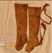 Le calzette erano indossate sopra alle sottocalze. Presentano una cucitura nel mezzo dietro e sono cominciate verosimilmente in alto con alcuni a maglie rovesce (BIBR: Orsi Landini Roberta 2011)