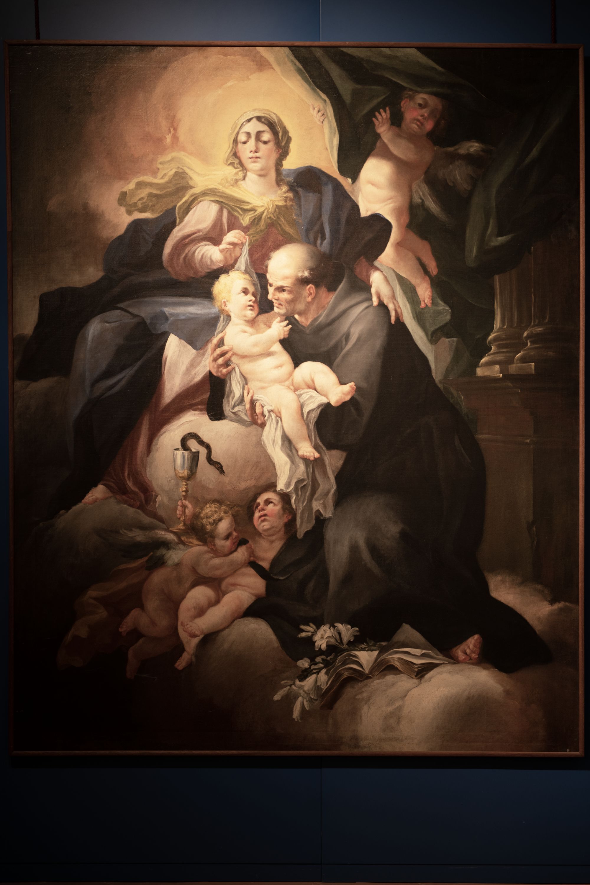 La tela raffigura l'apparizione della Madonna col Bambino a S. Guglielmo: il santo, al centro della scena, osserva intensamente Gesù con cui intrattiene un silenzioso dialogo; la Vergine, disposta in posizione apicale su un trono di nuvole, osserva i due proteggendo il santo con un gesto della mano e tenendo con la destra il panno in cui è avvolto il Bambino.Una coppia di puttini regge una coppa al cui interno è un serpente mentre, in alto a destra, un angelo apre la cortina che inquadra la scena