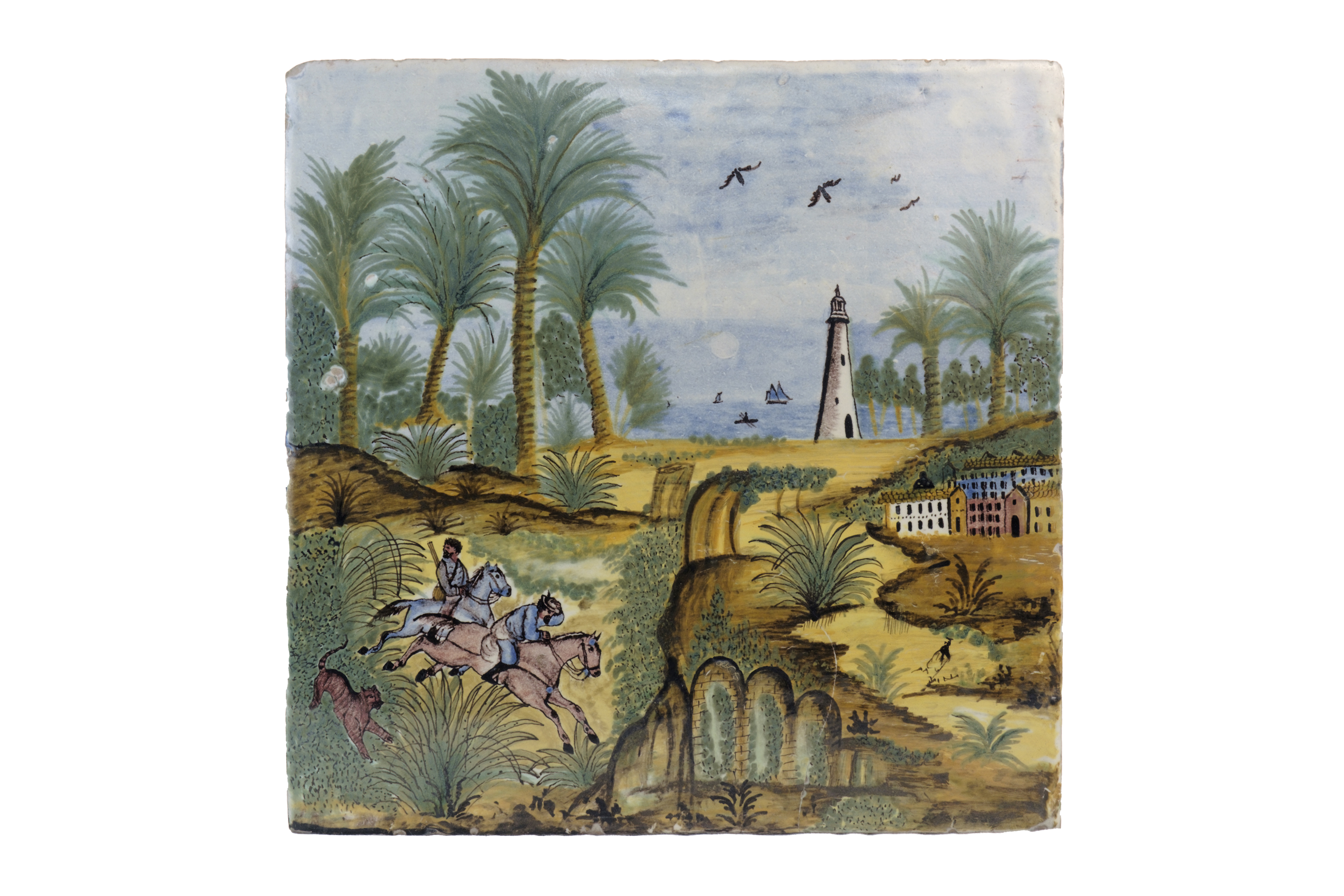 scena di caccia (formella) di Fabbrica Fratelli Tajani (laboratorio) - ambito vietrese (seconda metà XIX)