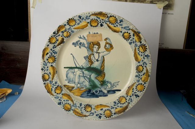 Guerriero reggente testa umana ed animali (piatto) - manifattura di Laterza (seconda metà sec. XVII)