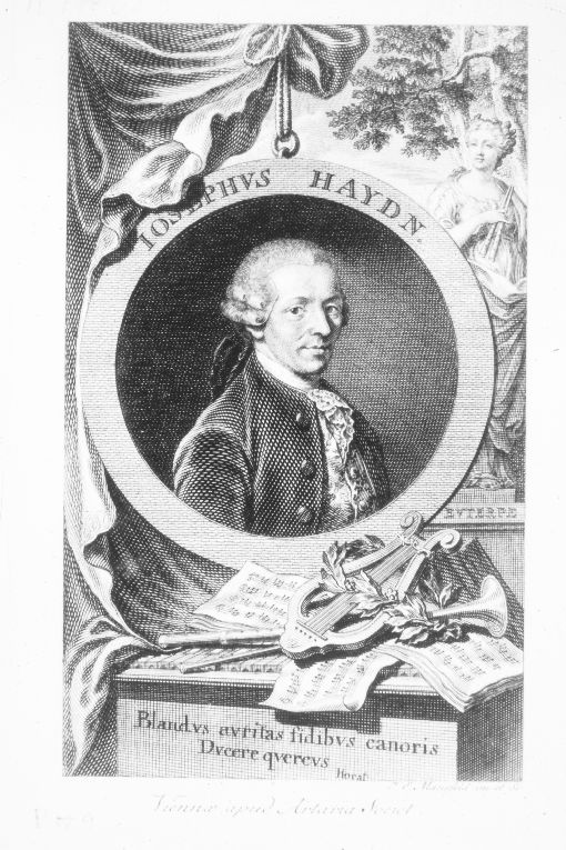 Medaglione con ritratto del compositore Joseph Haydn, lamusa Euterpe e simboli della Musica