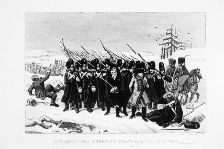 - ISCRIZIONI in basso al centro - RITIRATA DELL'ESERCITO FRANCESE DALLA RUSSIA / Norvins Cap.XXXV - Santamaria - corsivo -