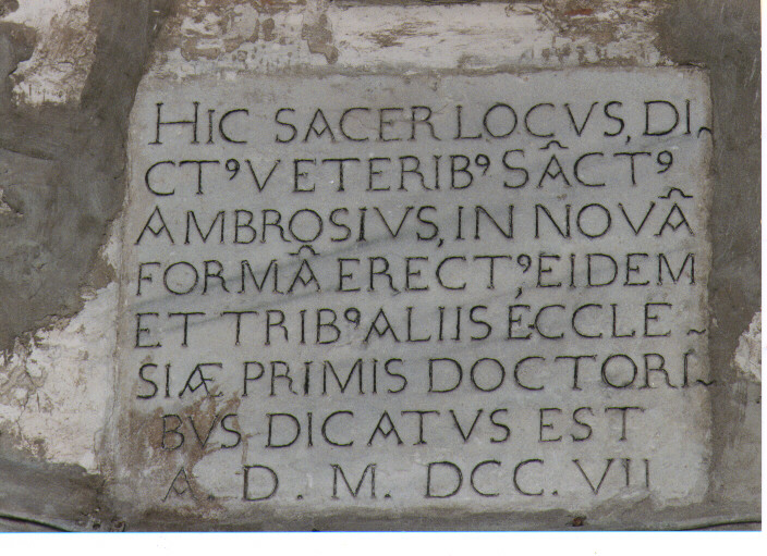 - NOTIZIE STORICO CRITICHE L'iscrizione rievoca la fondazione nel 1707 del luogo sacro, detto "Sanct Ambrosius"