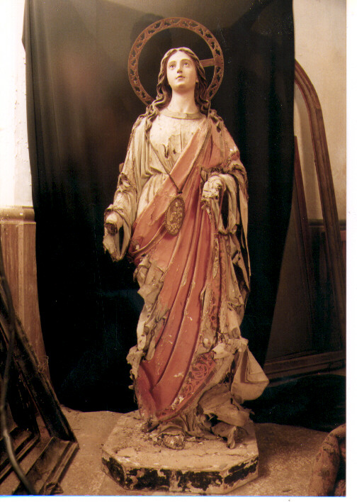 - NOTIZIE STORICO CRITICHE La statua versa in condizioni precarie e necessiterebbe di un intervento di restauro conservativo. Una coppia di scapolari in rame stampato pende dal collo e dal braccio della Santa, oggi venerata come Madonna del Carmel o