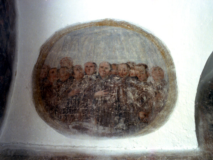 - ISCRIZIONI sul cartiglio in basso - DODE.... / ...MARTIRIZZATI / PER CRISTO NEL CONVENTO DI SAM(?)TMAN(?) -
