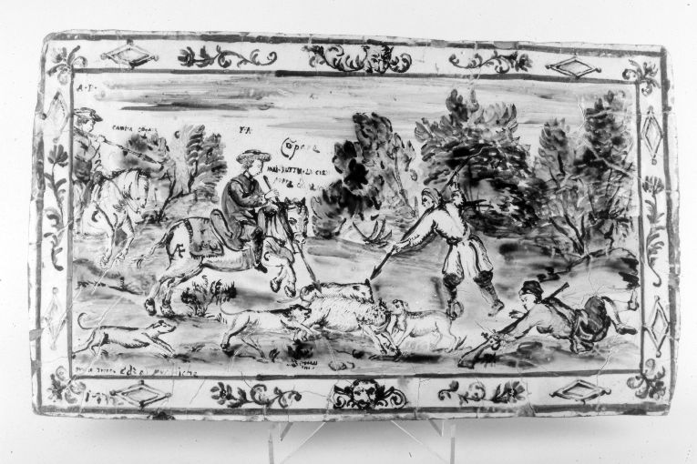 - ISCRIZIONI in alto a sinistra - A. F - maiolicaro F.A - lettere capitali - a pennello -