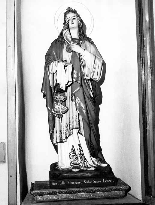 - ISCRIZIONI sul piedistallo di base - Prem. Ditta_ Giacane_ Statue Sacre Lecce - corsivo -