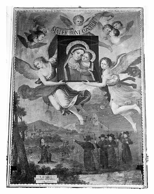- ISCRIZIONI in alto entro cartiglio - MATER BONI CONSILII - lettere capitali - a pennello -