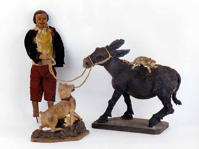 contadino con asino, cane e gatto