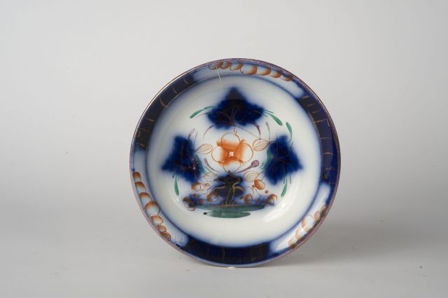 Piattino di servizio da the cinese con decori floreali in blu e arancio