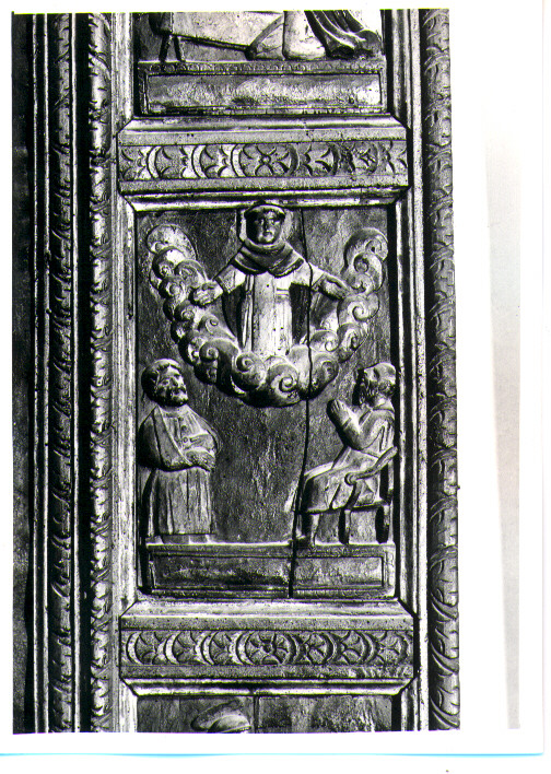 - NOTIZIE STORICO CRITICHE La scena è da identificarsi con uno dei miracoli di San Giacinto. Il nobile teutonico, divenuto infermo in seguito ad un incidente, pregò il Santo, che gli apparve in sogno, e riconquistò l'uso delle membra