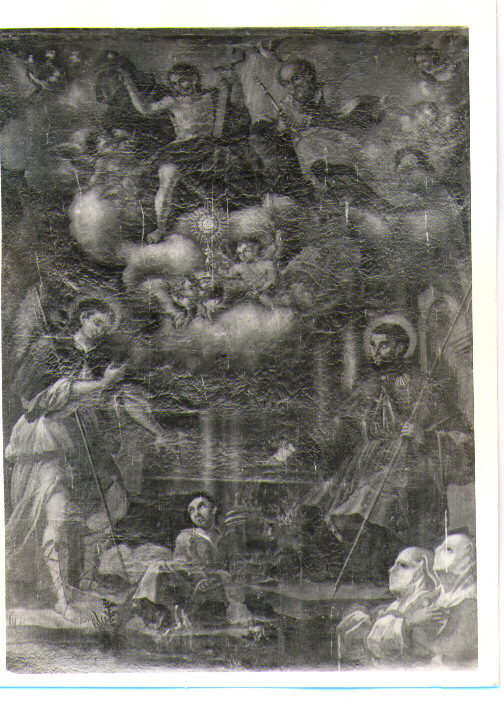 - NOTIZIE STORICO CRITICHE Il dipinto, di qualità modesta, è opera di un anonimo pittore di formazione solimenesca, attivo nella regione con altri della stessa cerchia. La presenza dei committenti, in basso a sinistra della tela, indica che questo apparteneva alla chiesa del SS. Sacramento, affidata alla confraternita omonima