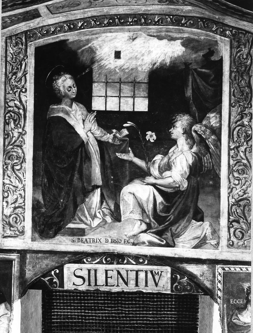 - ISCRIZIONI in basso al centro - S. BEATRIX DE DESIO F. C - lettere capitali - a pennello - latino