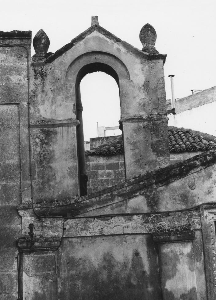 - NOTIZIE STORICO CRITICHE Il campaniletto, posto sul lato sinistro della facciata, attiguoall'ingresso del cortile dove su di una parete sono incastonati tresingolari bassorilievi duecenteschi coevi a quelli della cattedrale, chesecondo le fonti raffigurerebbero Cristo e i due apostoli Pietro e Paolo;è perfettamente uguale all'altro posto sul lato destro, ne ripete sia loschema che le parti decorative ma risulta privo di campane. Della crocecentrale rimane soltanto una piccola parte inferiore